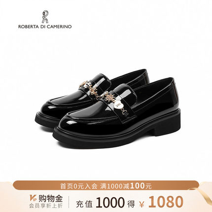 诺贝达2025春新款粗跟英伦风乐福鞋圆头白色小皮鞋女士RS257005