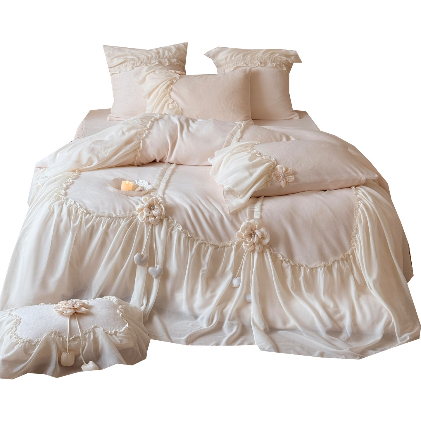金喜鸟家纺公主风被套加厚保暖立体花牛奶绒毛绒四件套冬季珊瑚绒