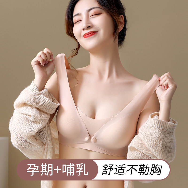 哺乳内衣聚拢防下垂产后前开扣喂奶孕期J专用孕妇文胸薄款大码胸