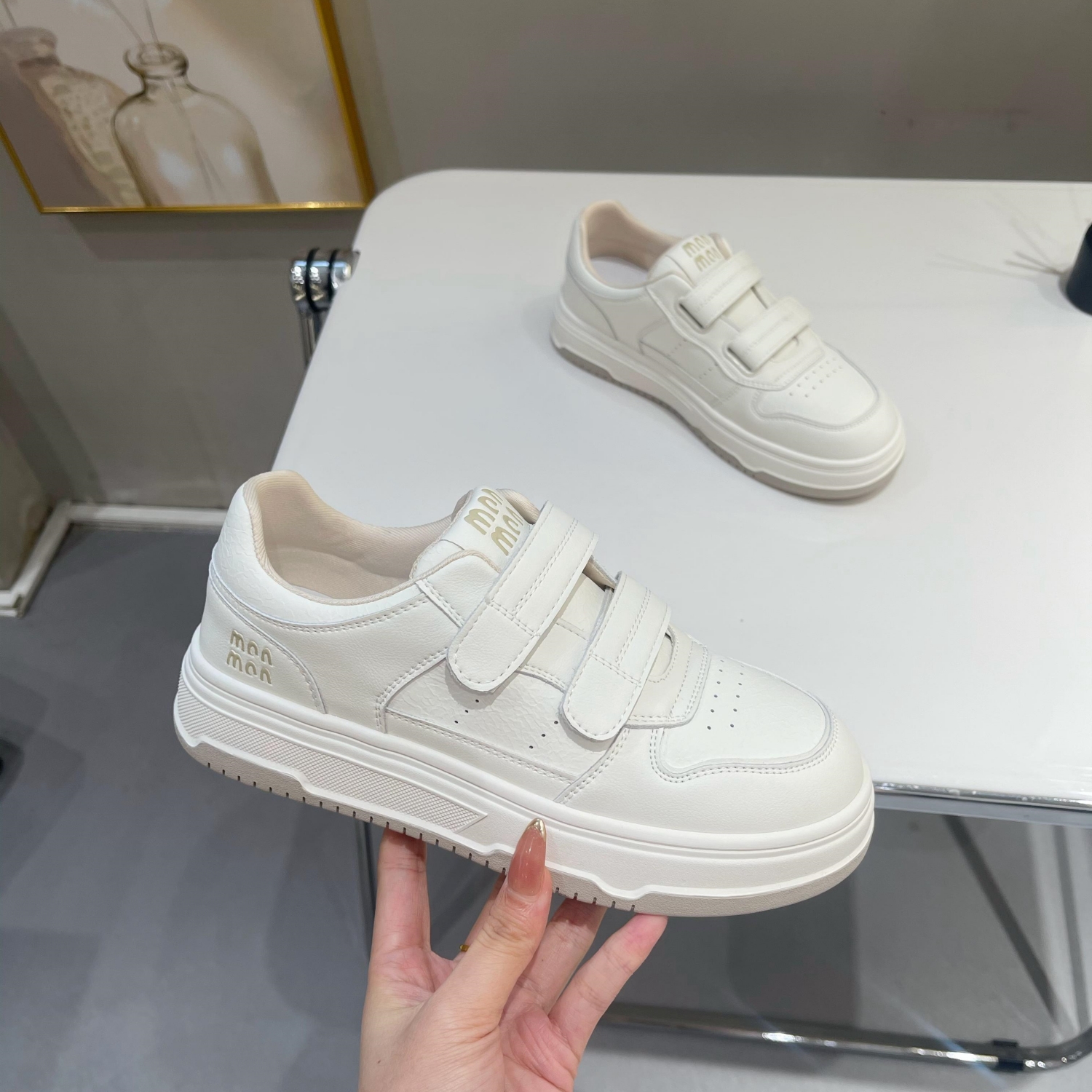 平底真皮小白鞋女ins潮2025秋季新款显脚小魔术贴板鞋休闲运动鞋