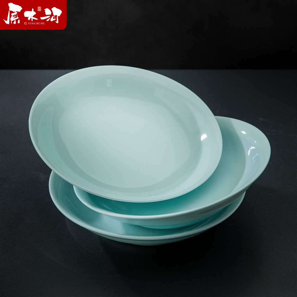 景德镇陶瓷影青釉下彩盘子菜盘家用商用酒店饭店餐具中式汤盘深盘
