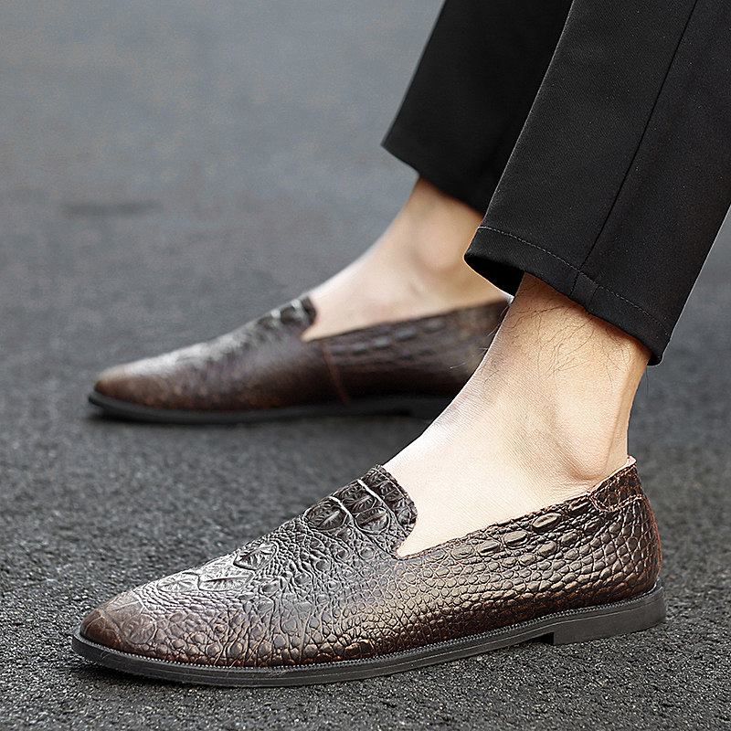 青年休闲男皮鞋2025新款轻便软底真皮小码时尚潮流一脚蹬豆豆鞋男