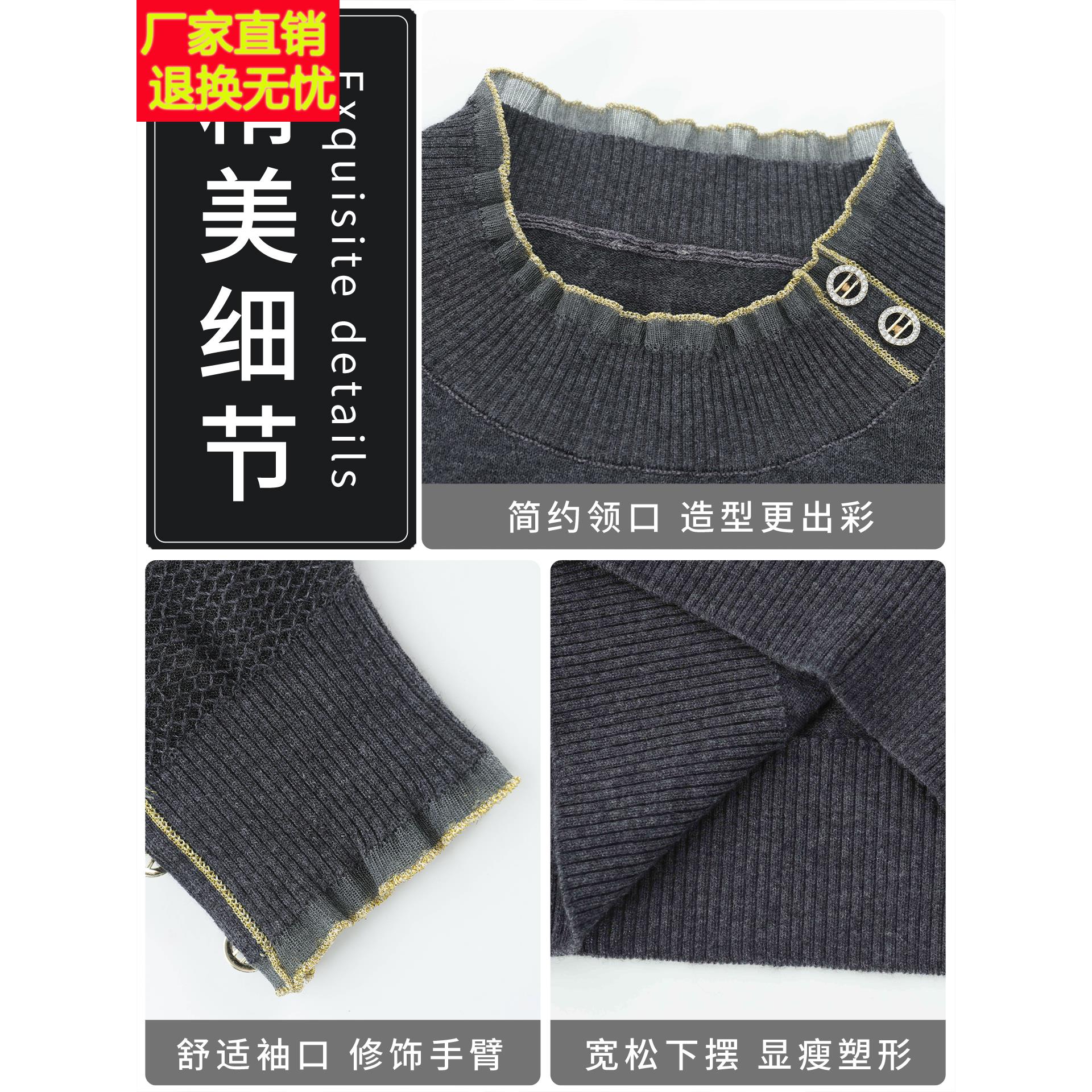 微胖mm春秋大码半高领女士毛衣遮肚子显瘦气质蕾丝上衣针织打底衫