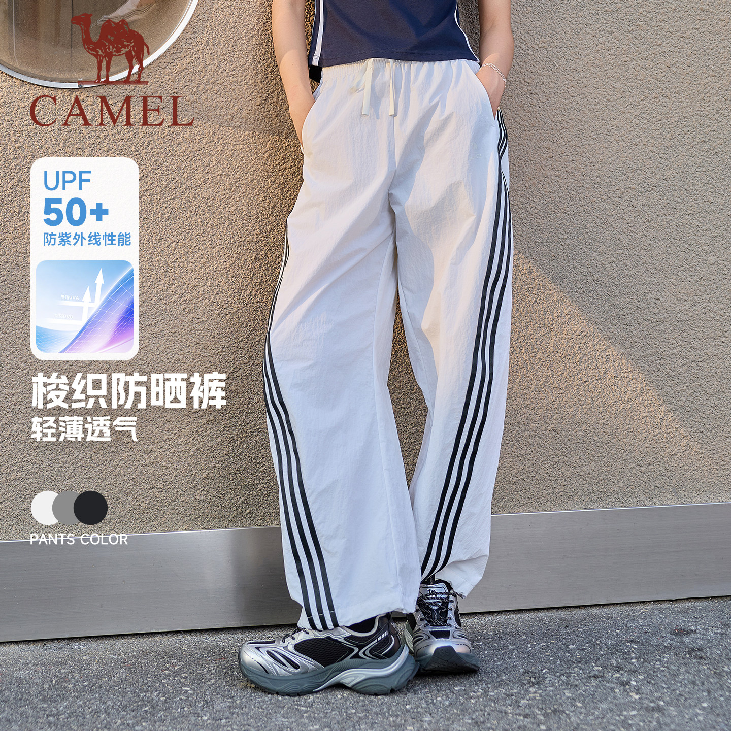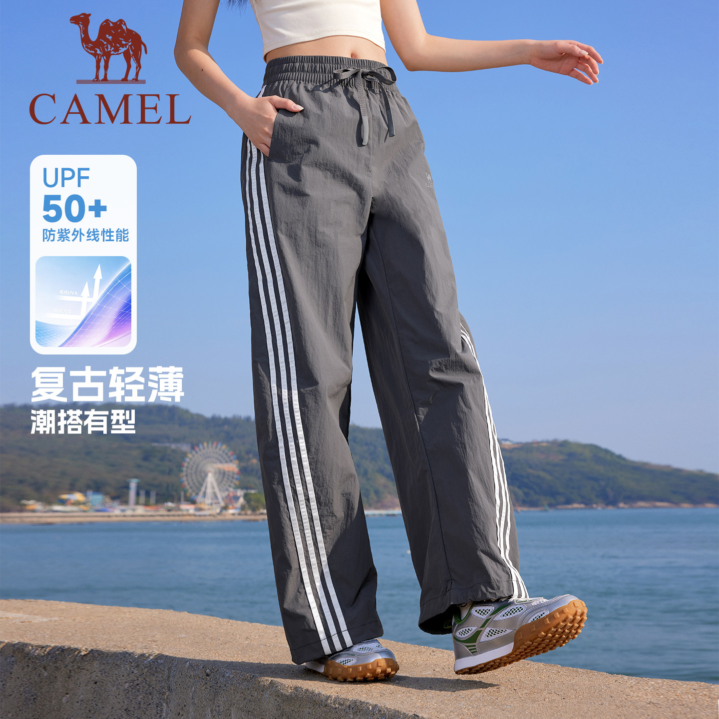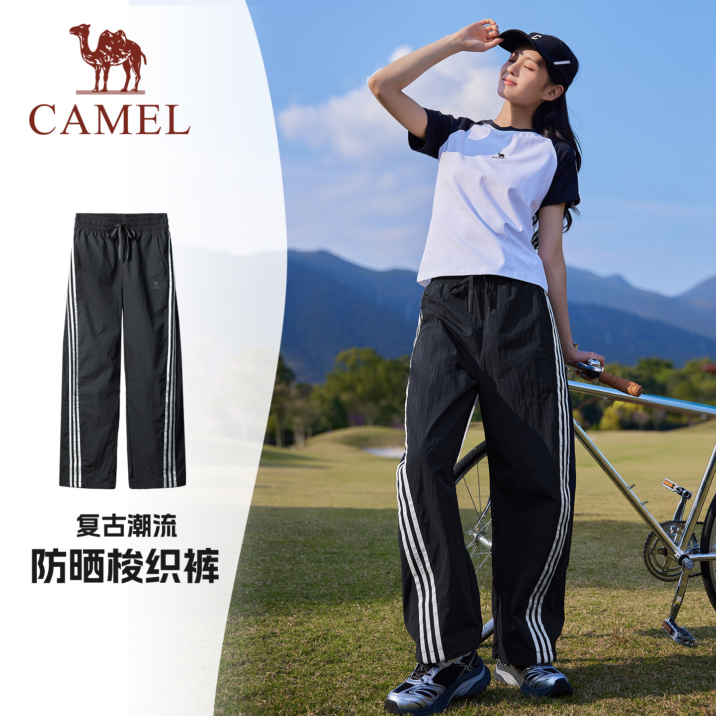 骆驼运动休闲长裤女美式复古三条纹2026夏季新款宽松直筒工装裤