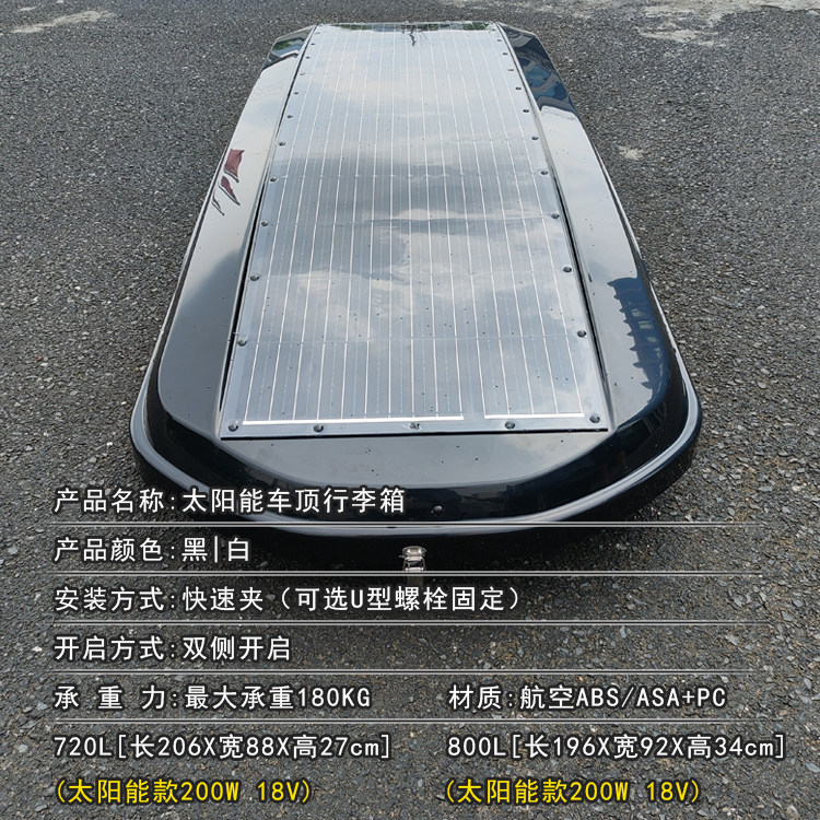 车顶行李箱带太阳能板 SUV通用大容量车载旅行箱 自驾游太阳能箱