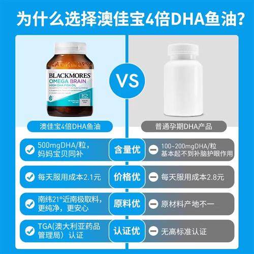 Blackmores澳佳宝4倍DHA深海鱼油软胶囊脑铂金鱼油60粒学习考验