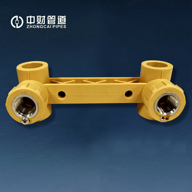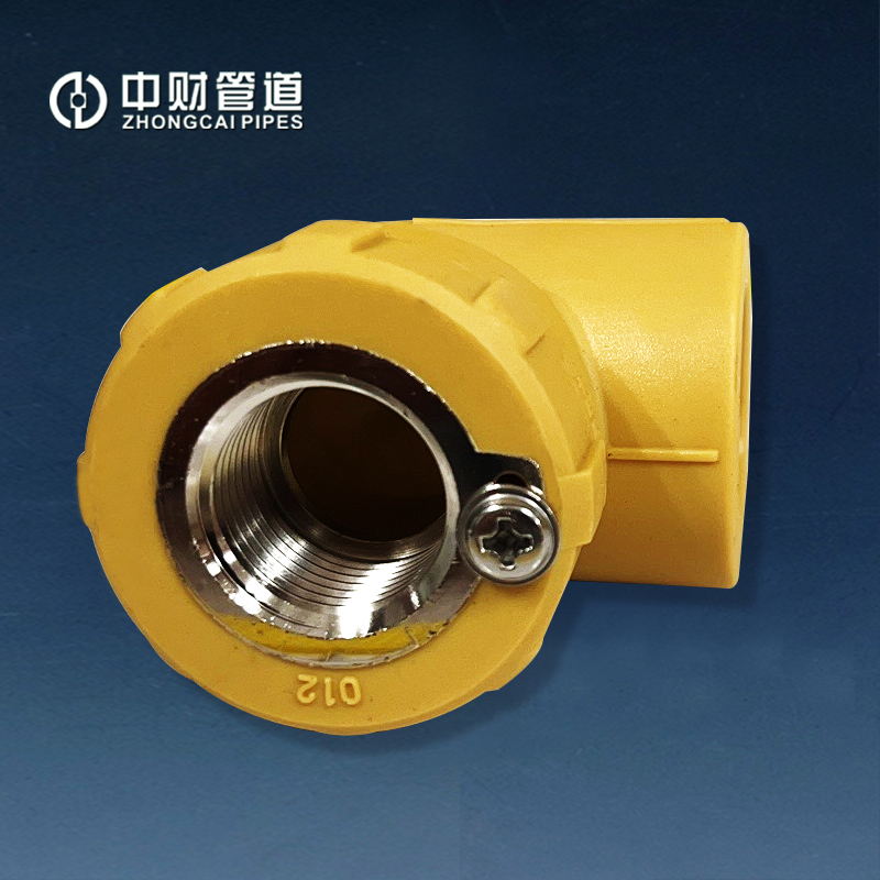 中财管道 咖喱色ppr热水配件 等电位内螺纹弯头直接 双联弯头三通