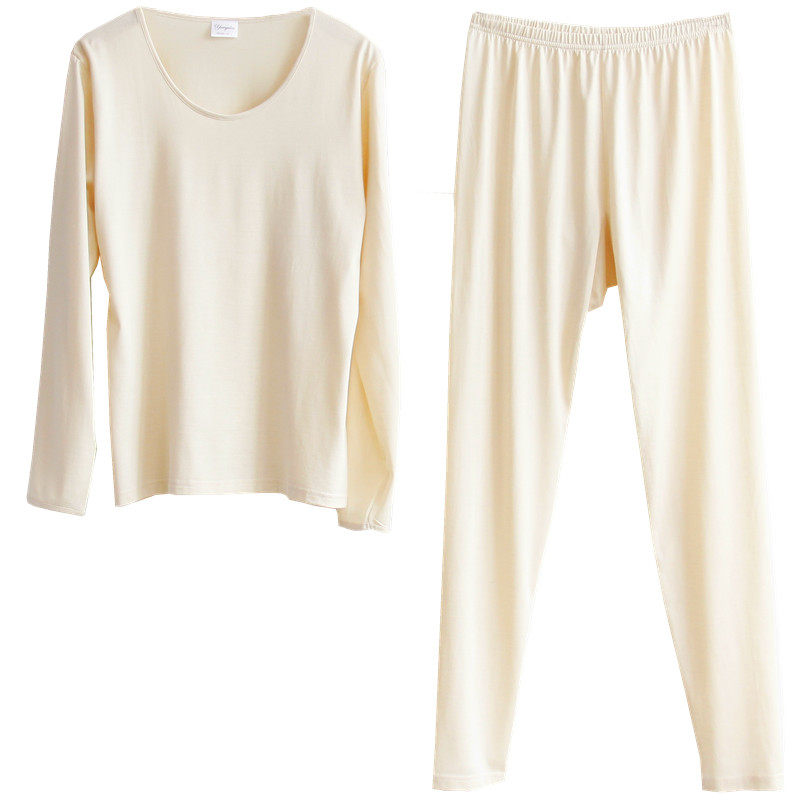 福利款~桑蚕丝睡衣套装女士内衣 秋衣秋裤真丝加棉打底衫打底裤