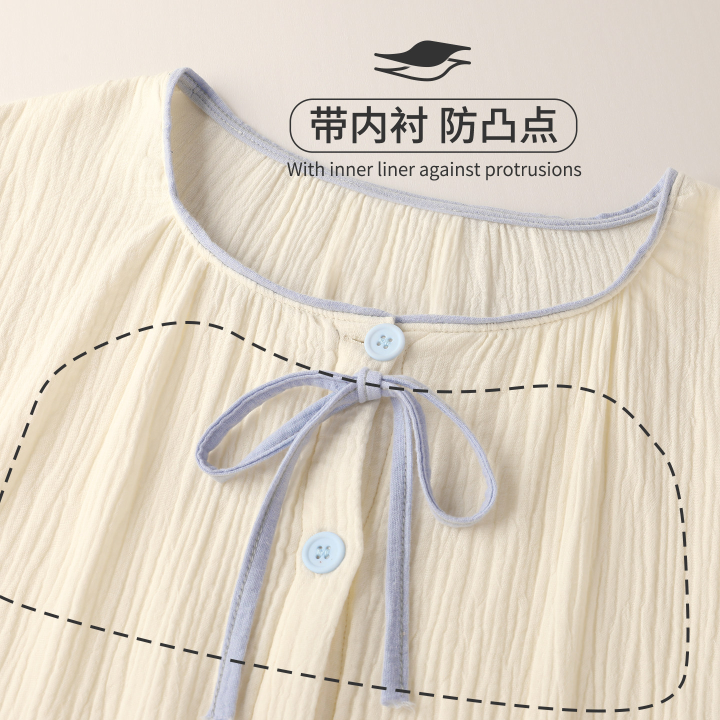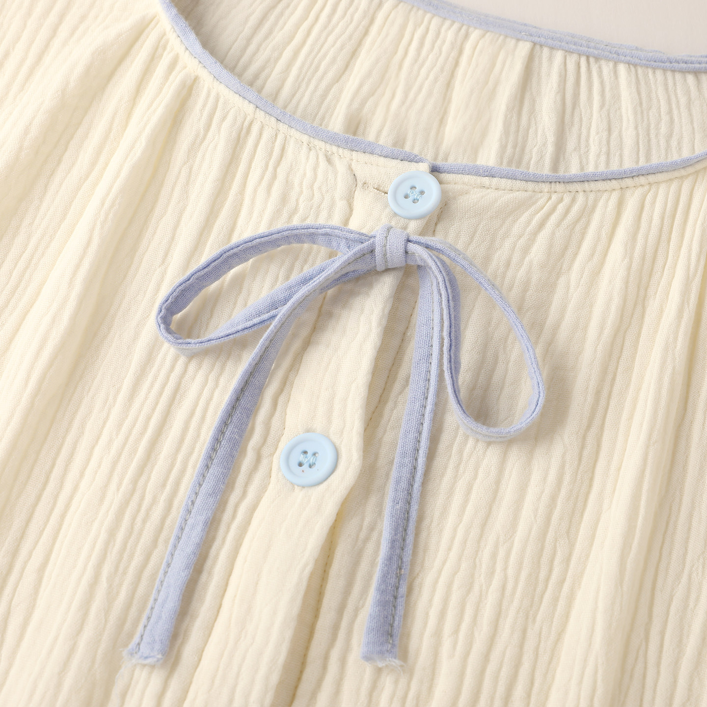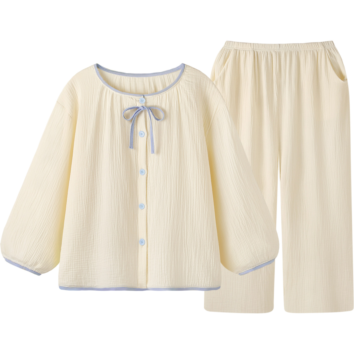 『荔枝奶白』清新简约睡衣女款春秋款新款纯棉纱布长袖套装家居服
