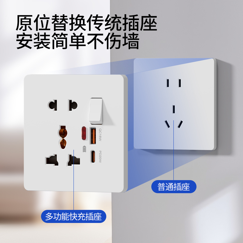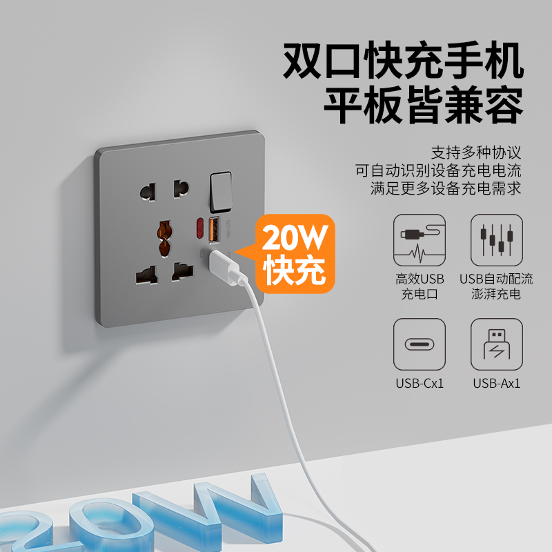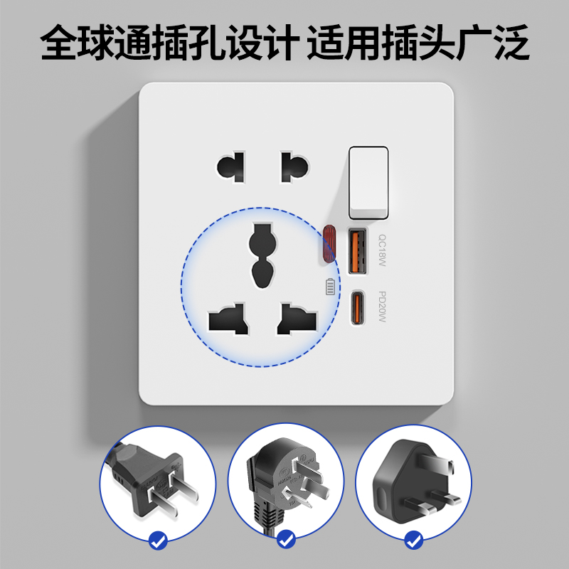86型香港13a英式一开五孔插座带开关type-c口快充USB充电插座面板