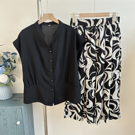 母亲节妈妈夏装冰丝雪纺短袖t恤中老年人女洋气时尚小衫上衣套装