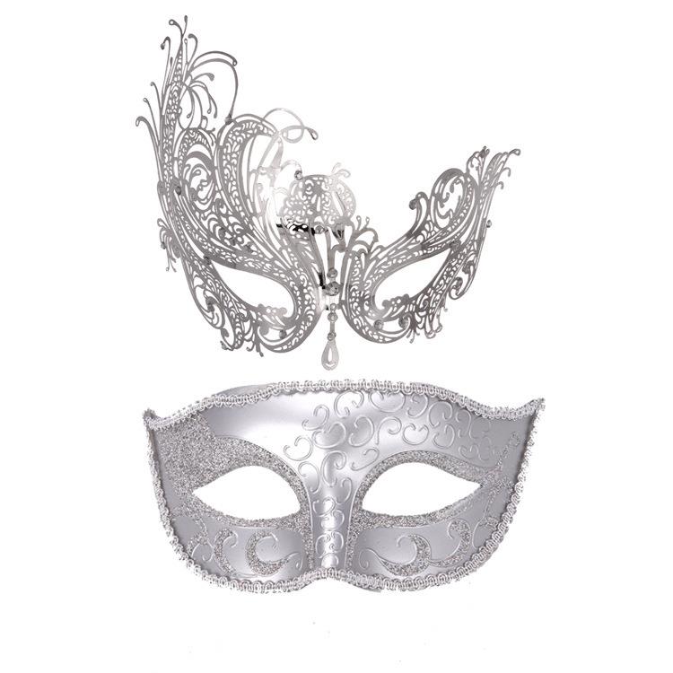 威尼斯化妆舞会铁艺面具 舞会派对镶钻黑色眼罩套装半脸金属面具