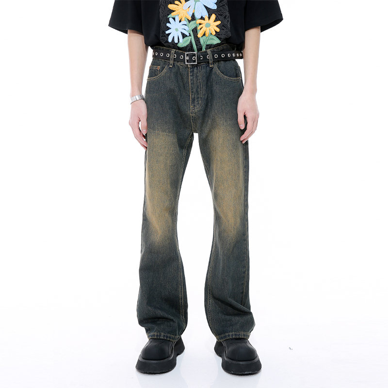 Voguo Relay 韩版做旧复古水洗微喇叭合体百搭中腰牛仔裤 男女款