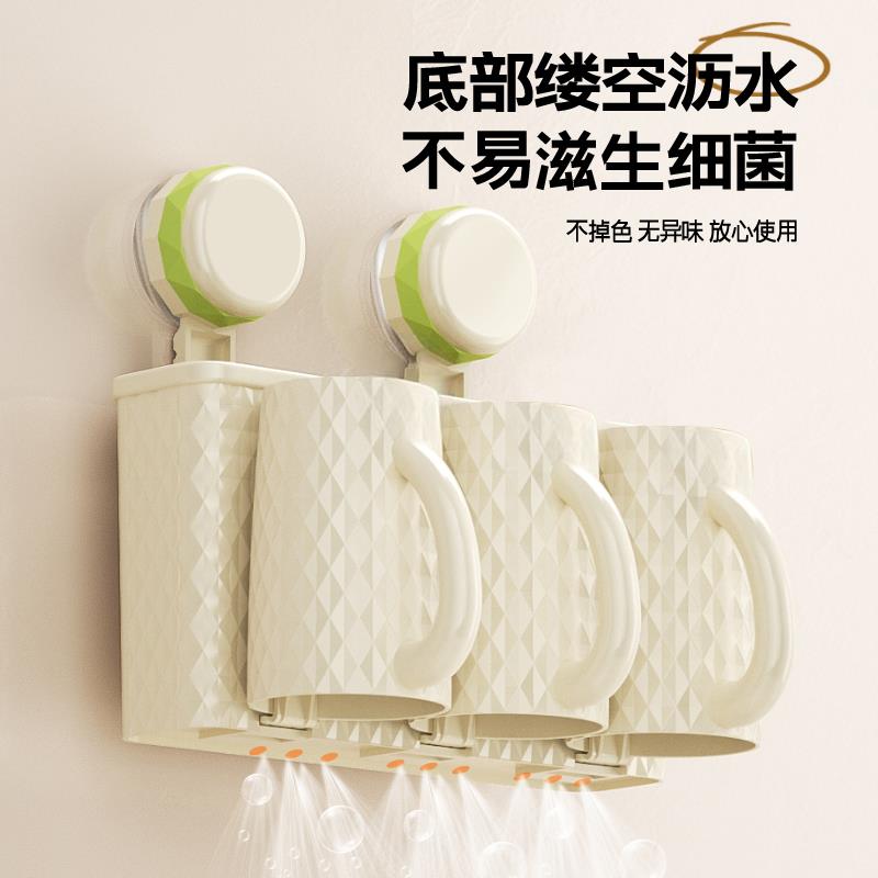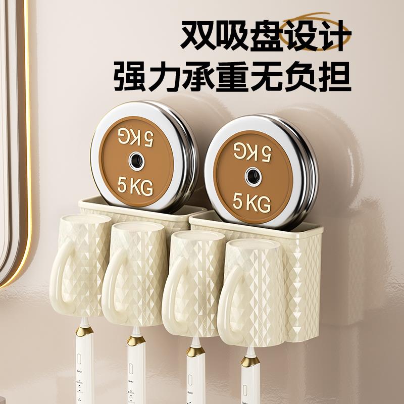 2025新款吸盘牙刷置物架壁挂式免打孔化妆室刷牙漱口杯架牙杯挂架