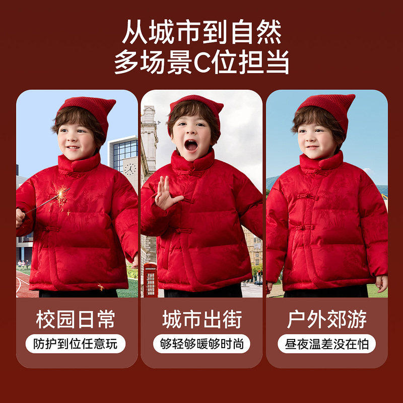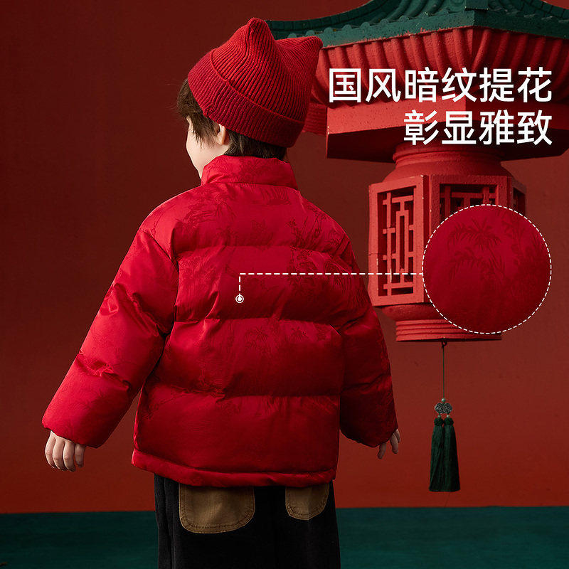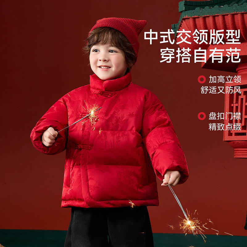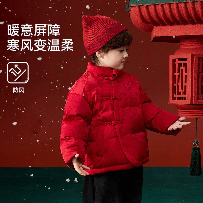 森许男童红色年服儿童拜年服2025新款棉服外套宝宝新中式唐装加厚