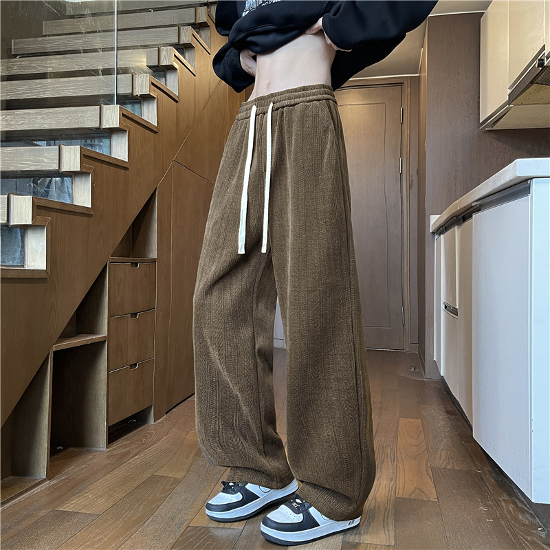 香港潮牌余文乐长裤卡其色机能工装裤直筒休闲男宽松哈伦裤麦穗纹