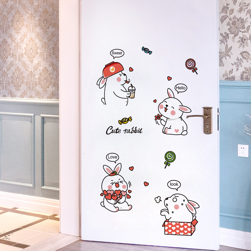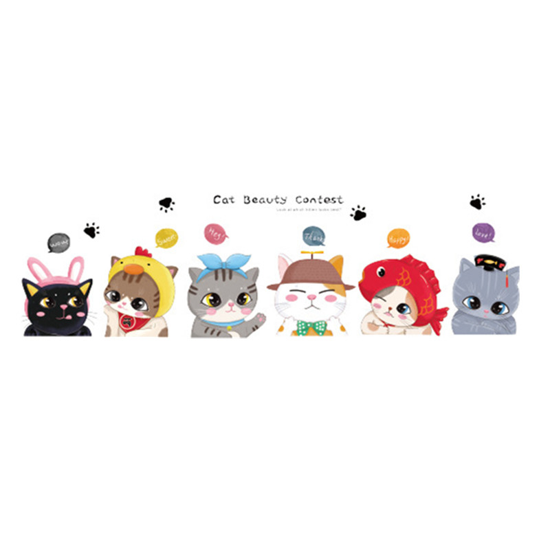 可爱小猫墙面装饰贴纸卡通墙上画报创意儿童房间自粘背景墙贴画