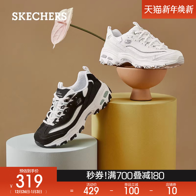 斯凯奇秋冬女子舒适老爹鞋熊猫鞋增高时尚休闲鞋情侣款户外运动鞋
