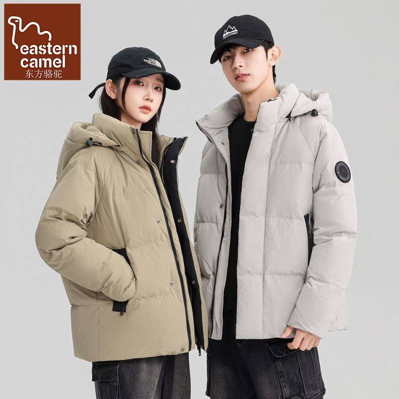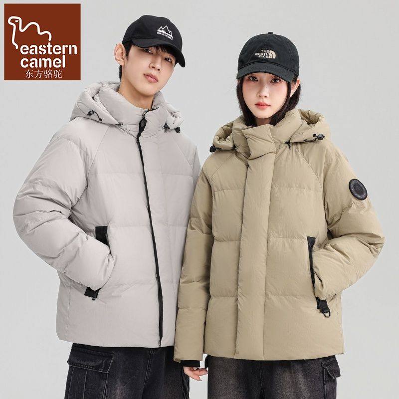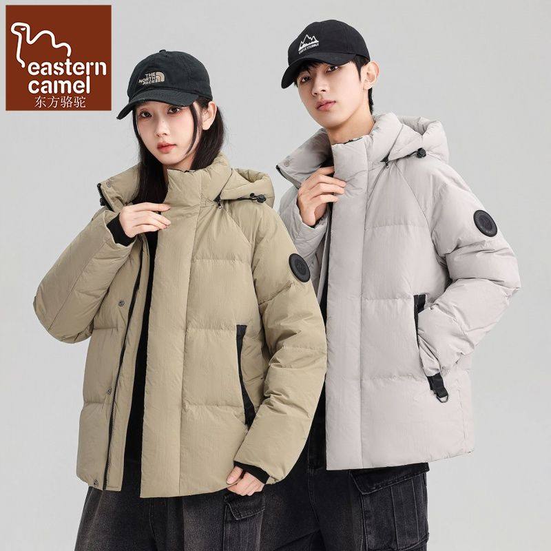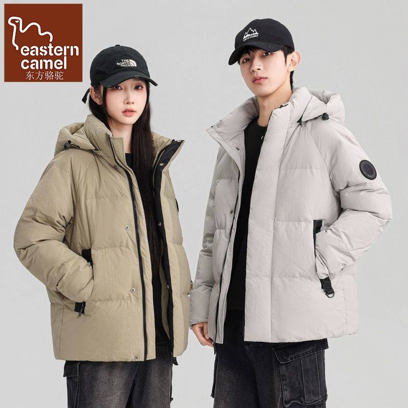 东方骆驼90白鸭绒情侣百搭连帽羽绒服宽松休闲防寒保暖面包服外套