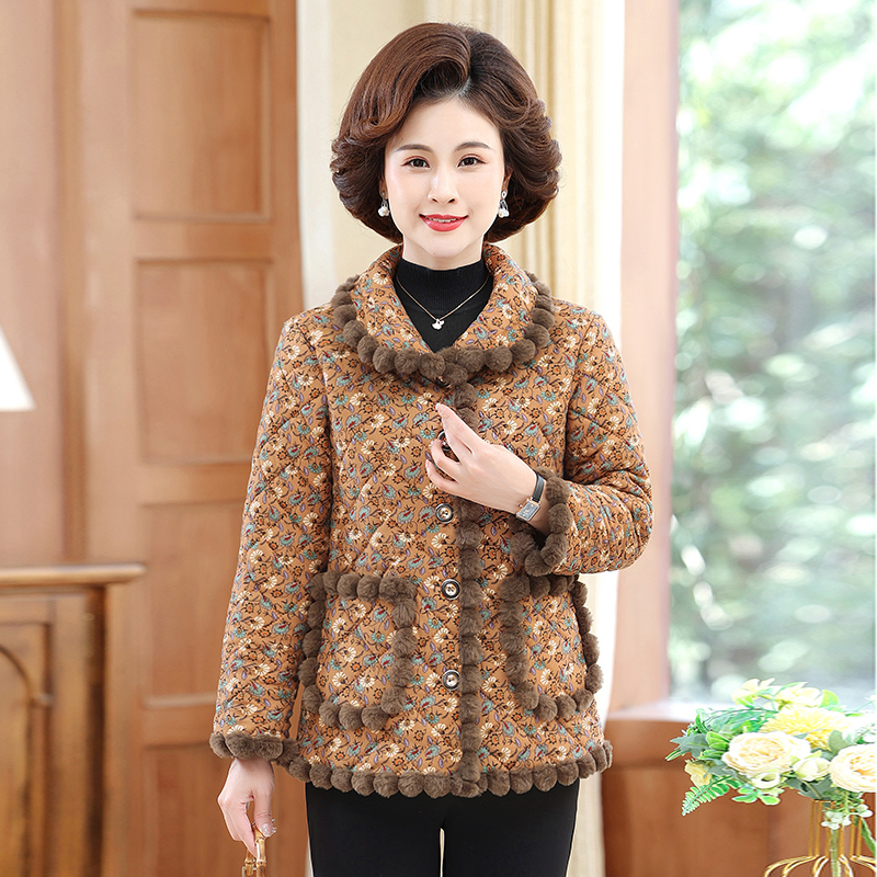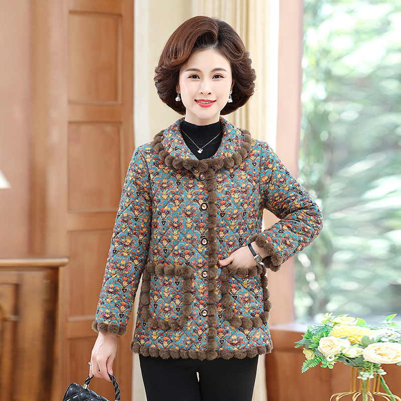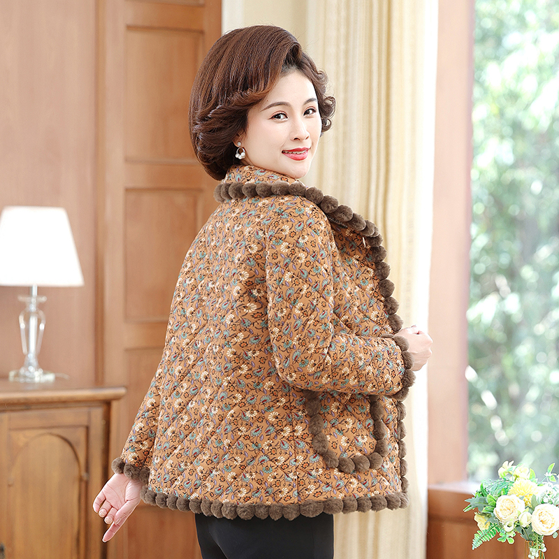 妈妈冬装加绒加厚棉衣外套中老年女装秋冬保暖棉服奶奶碎花棉袄
