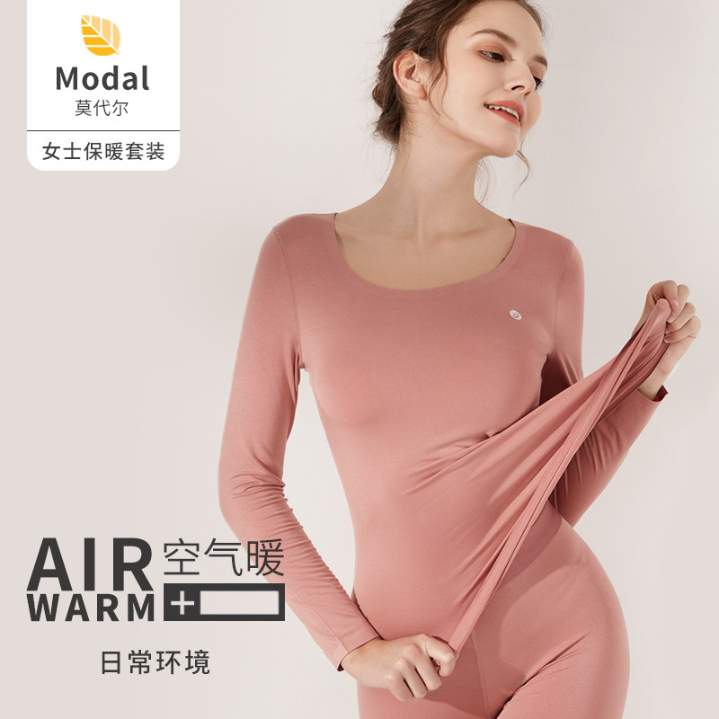 猫人保暖内衣薄款女士兰精莫代尔秋衣秋裤圆领修身打底棉毛衫套装