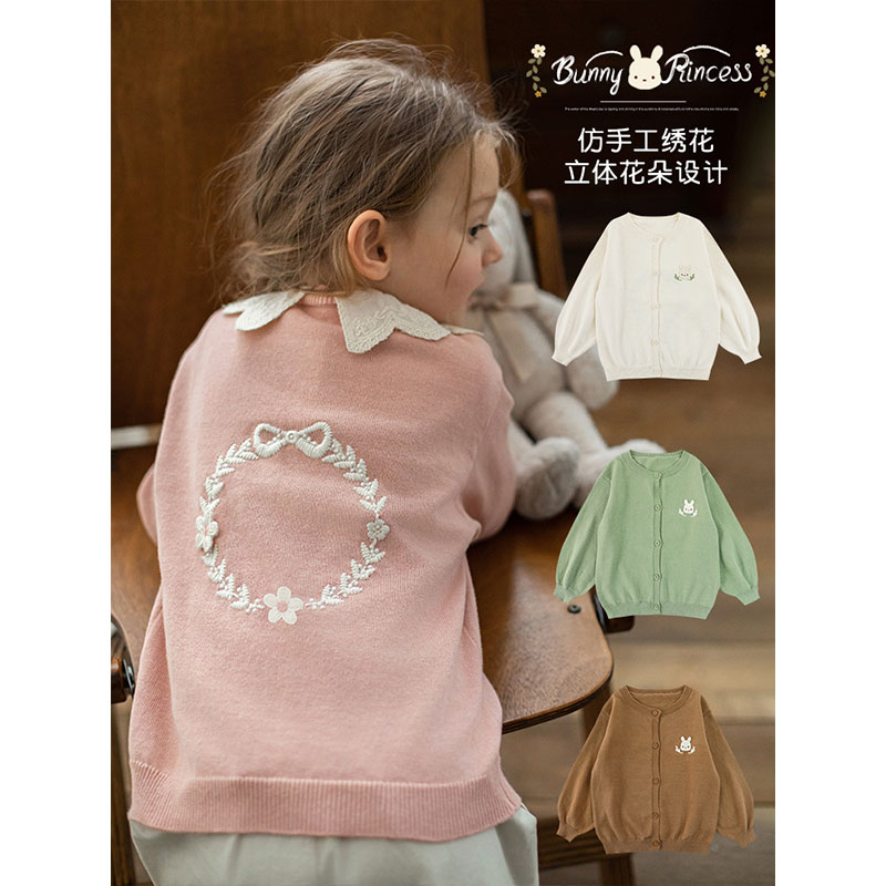 幼悠女童森林兔子毛衣开衫2025春秋新款儿童洋气可爱宽松休闲外套