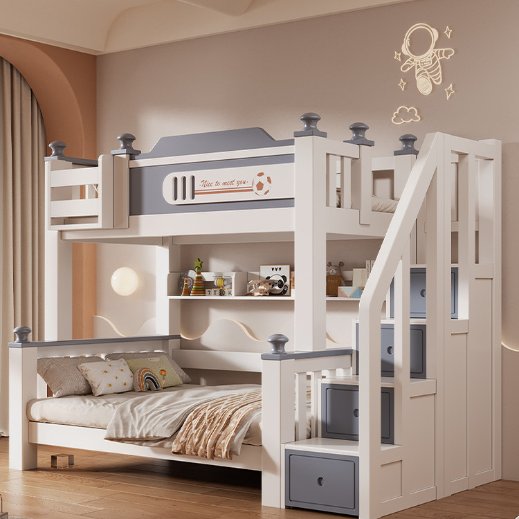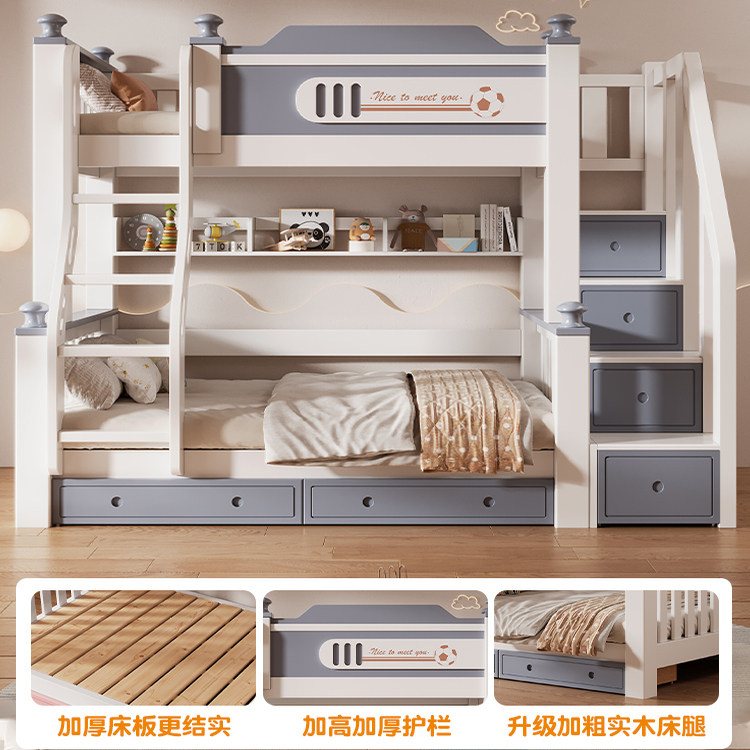 上下床实木子母床儿童高低床带储物楼梯高低床小户型多功能组合床