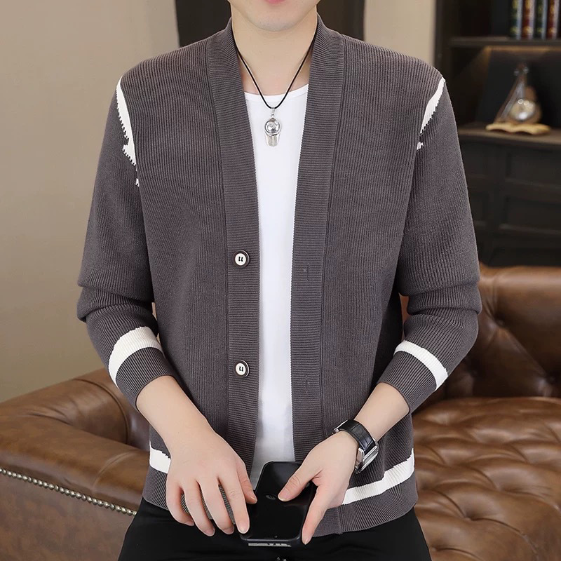 2025男士新款毛衣针织开衫外套潮流修身大码韩版休闲开襟百搭