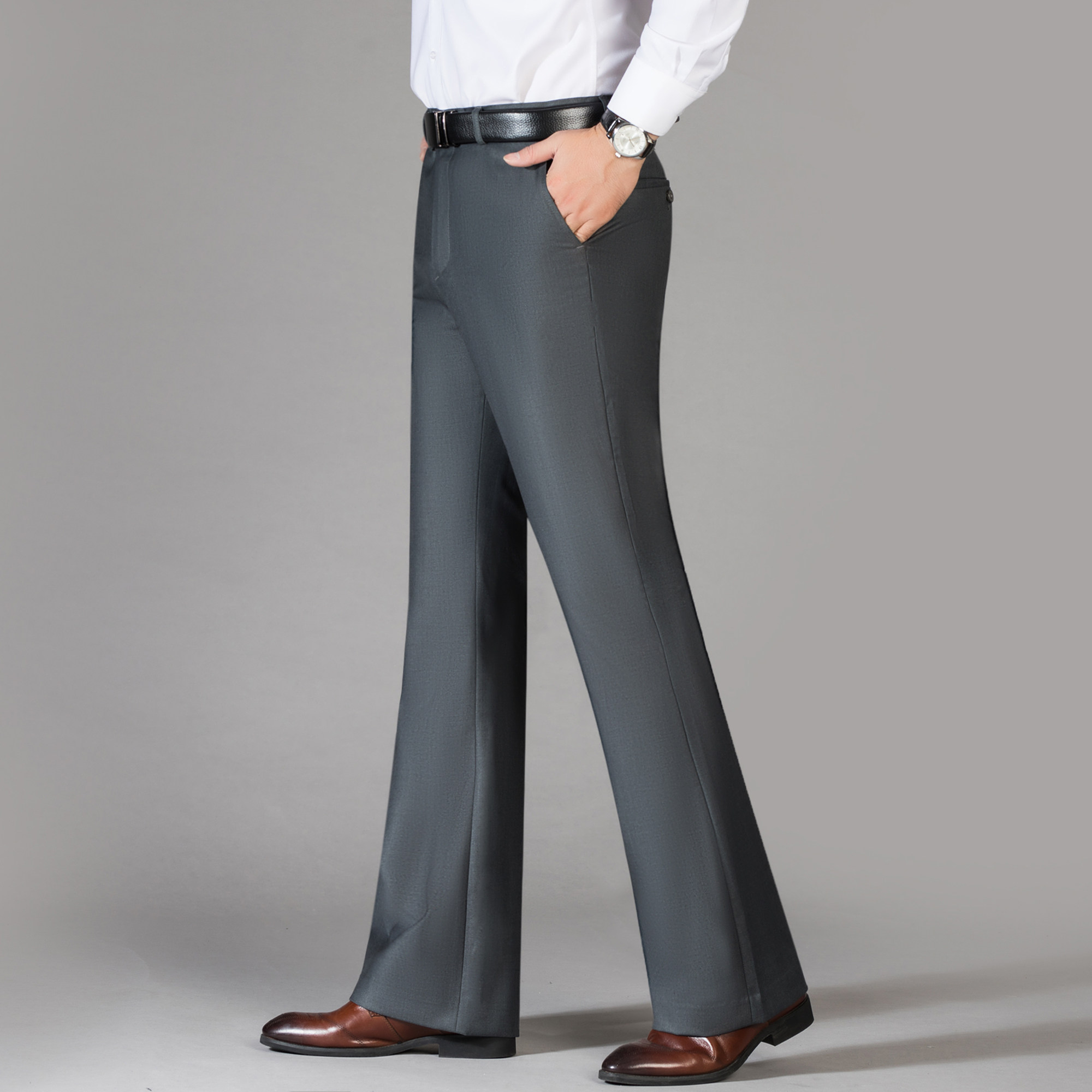 微喇叭裤男春夏新款男士阔腿裤商务休闲西裤百搭垂感免烫直筒裤男