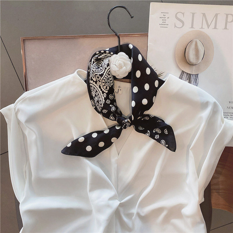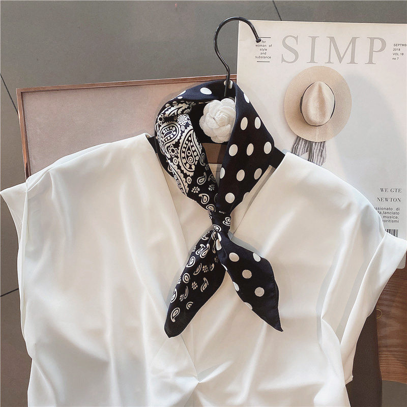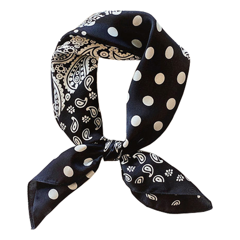 气质腰果花黑色真丝丝巾女春秋装饰波点桑蚕丝方巾职业搭配领巾薄