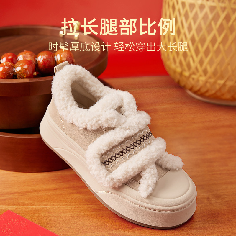 热风厚底毛毛鞋女2025年冬季新款加绒休闲鞋增高板鞋魔术贴女棉鞋