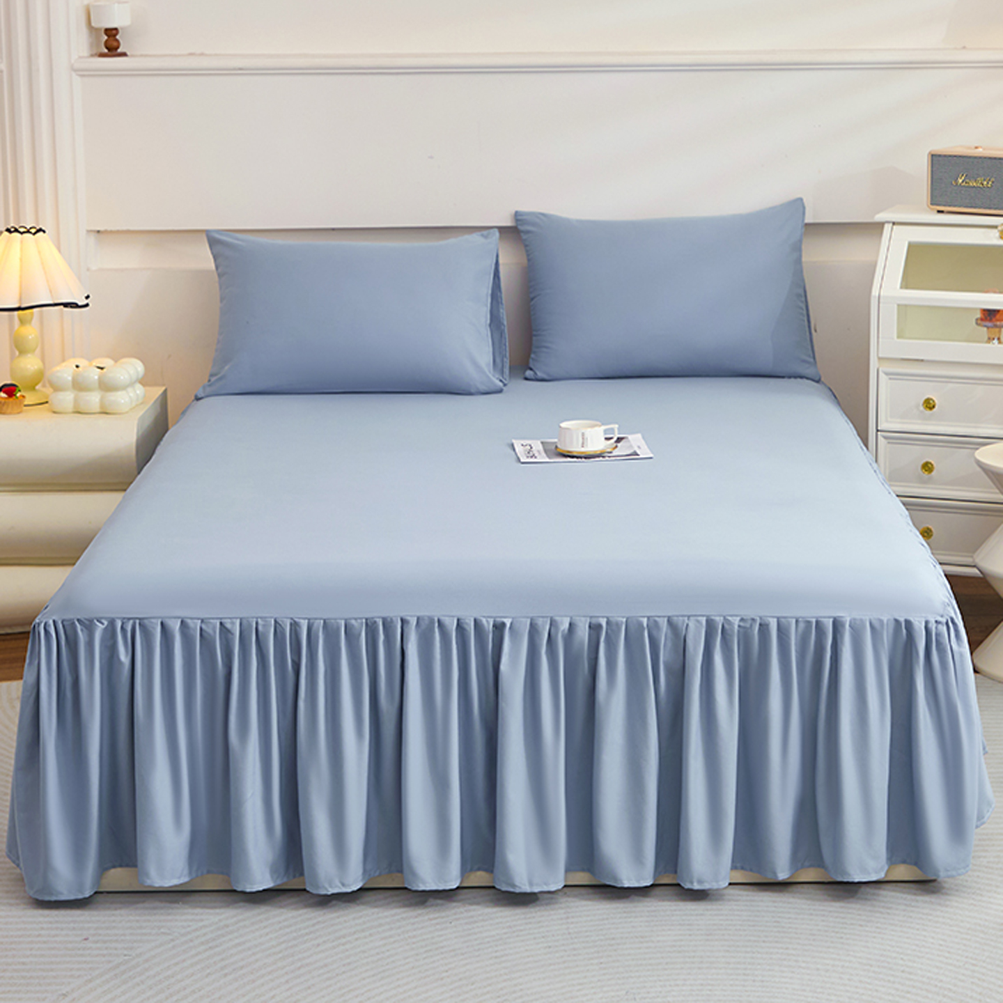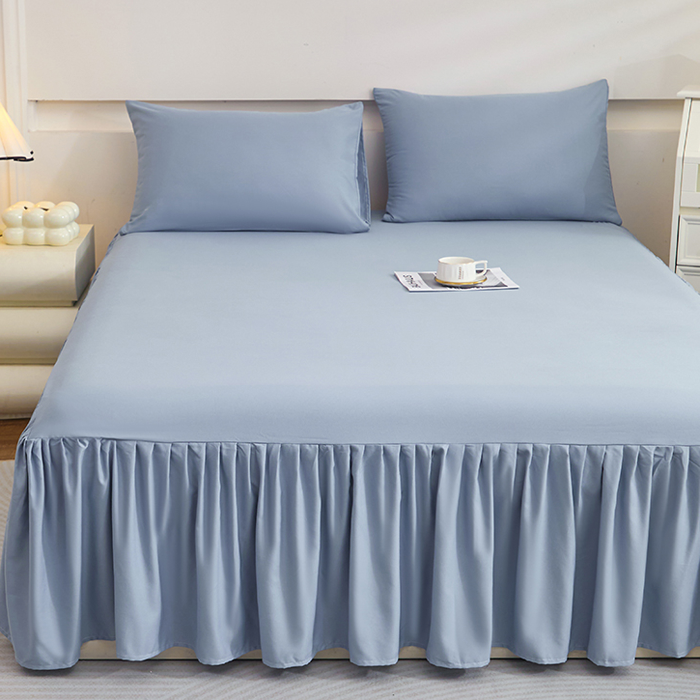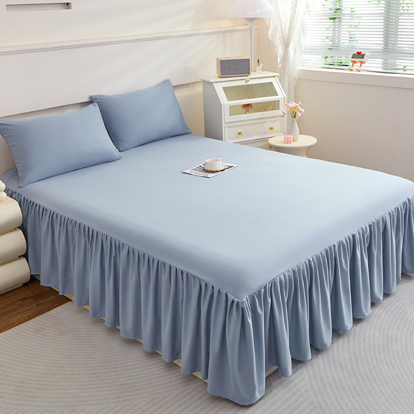 简约纯色针织双层纱床裙式床罩单件床围裙防尘遮丑保护套四季通用