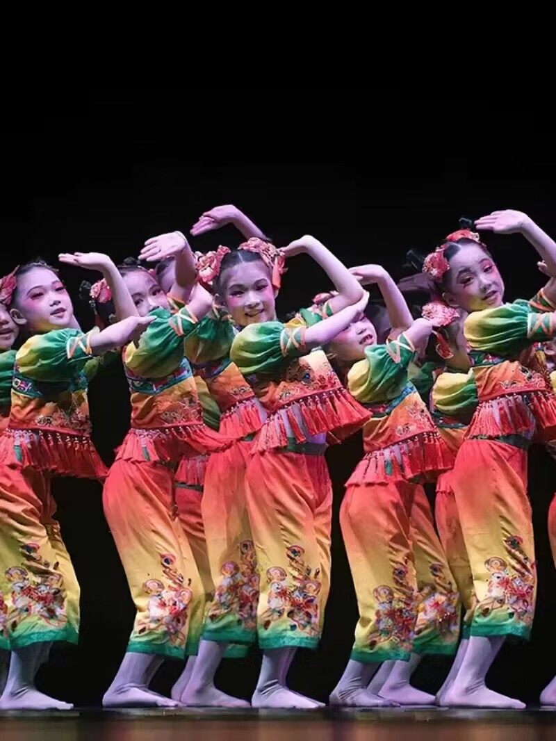 小荷风采红红的花花鞋儿童演出服装六一喜庆舞蹈中国风秧歌表演服