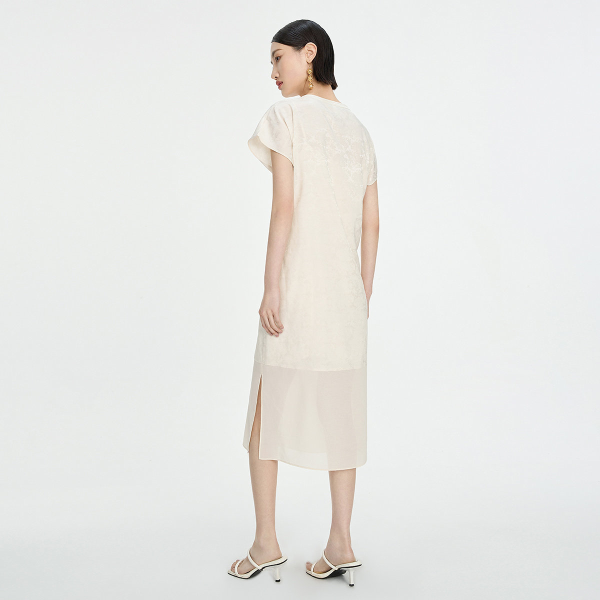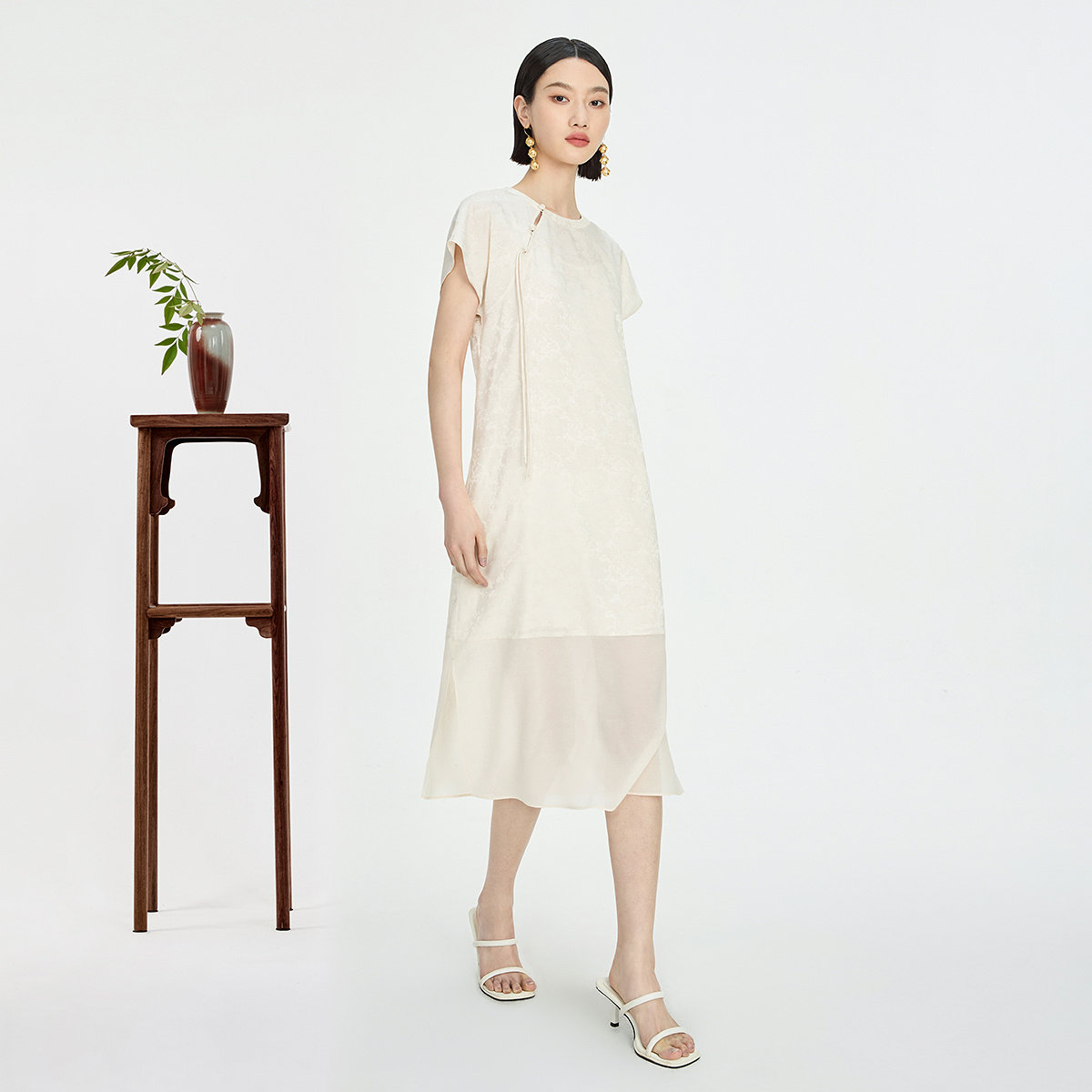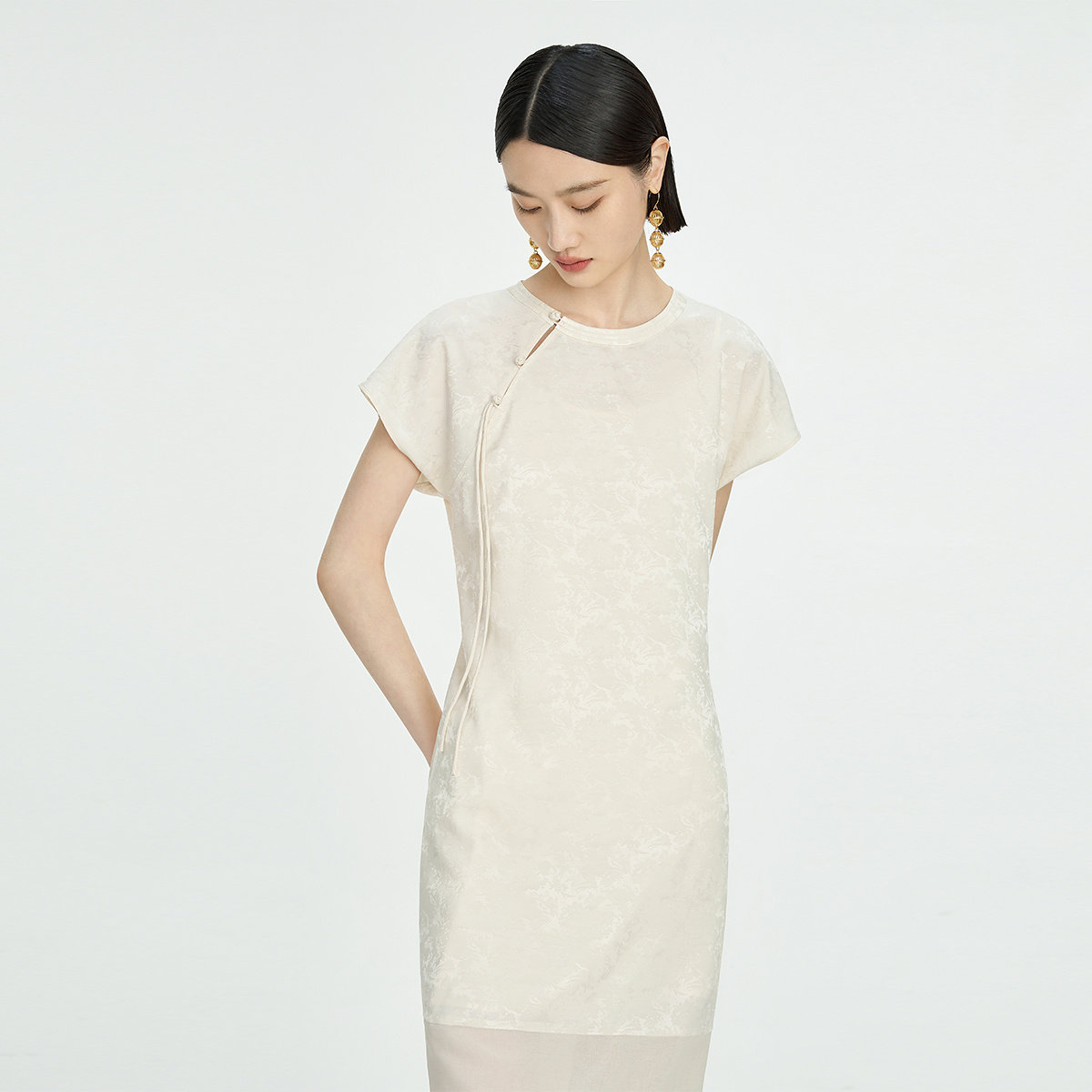 商场同款naivee纳薇新中式斜襟盘扣提花短袖薄H型连衣裙女