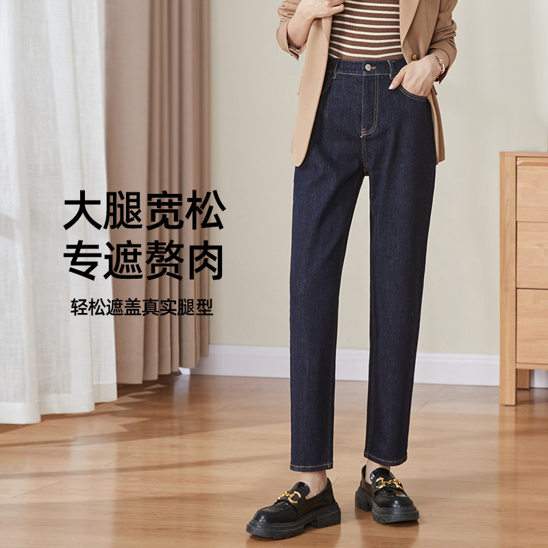 逸阳高腰宽松牛仔老爹裤子女秋季新款2025小个子百搭哈伦萝卜裤子