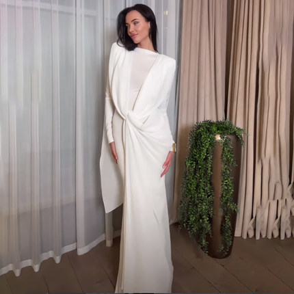 #Sisjuly#典雅静奢大气 小众设计不规则纽带飘纱时尚长袖连衣裙女