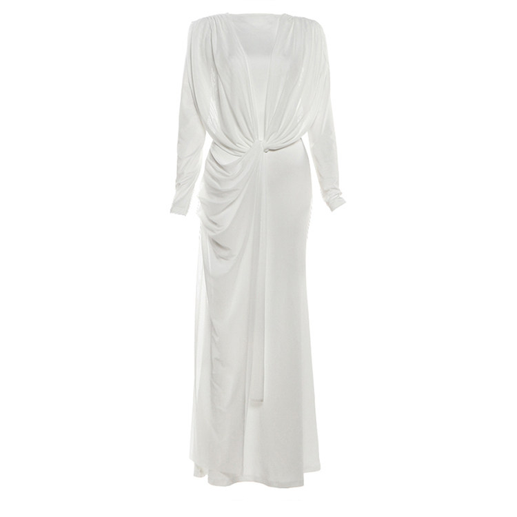 不规则纽带飘纱时尚长袖连衣裙女