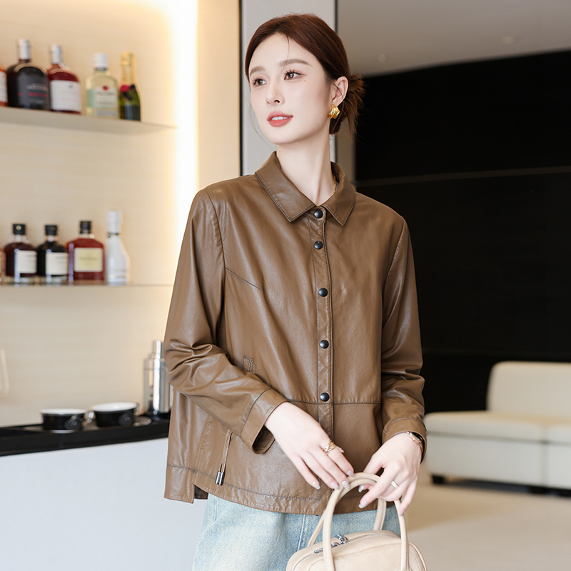 海宁真皮皮衣女2025春季新款小个子休闲宽松绵羊皮夹克外套短款