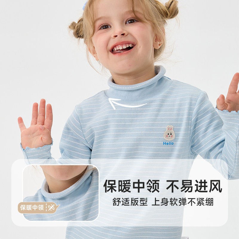 春季男女童纯棉打底衫中小童A类半高领长袖T恤中小童学生打底