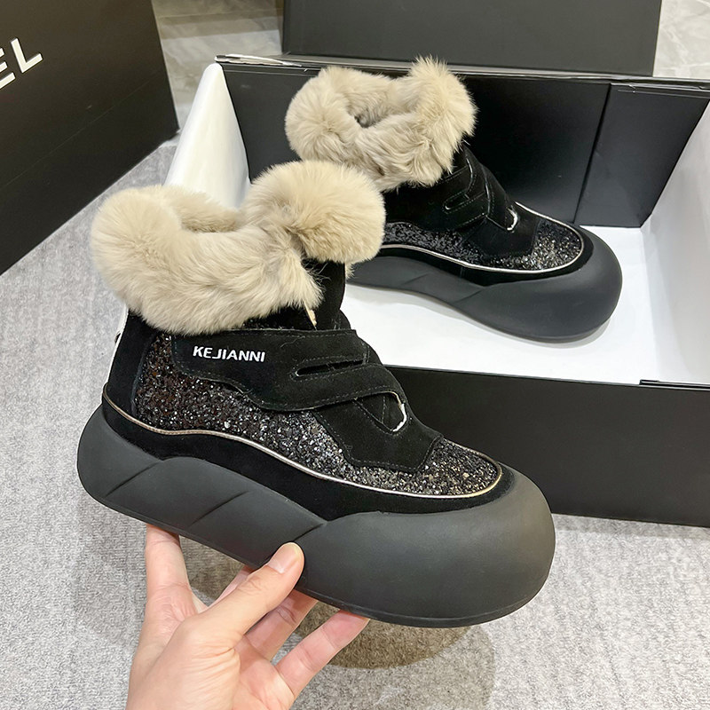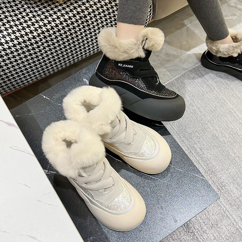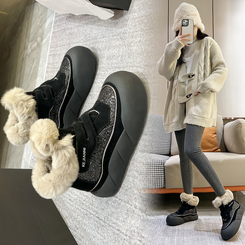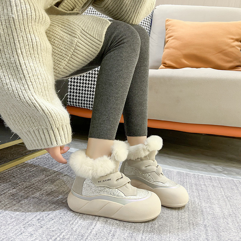厚底雪地靴2025冬季新款防滑保暖短靴魔术贴加绒高帮女鞋亮片棉鞋