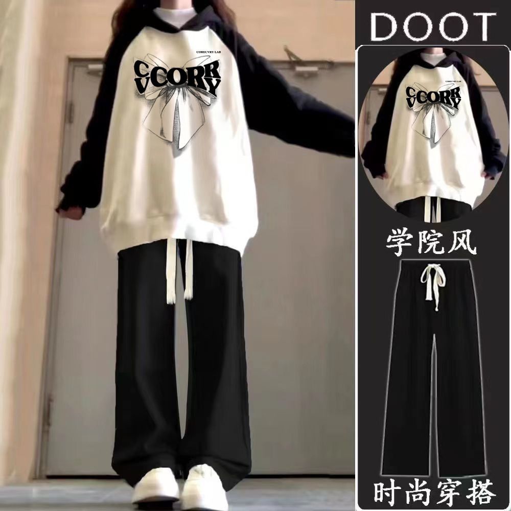 洋气女童秋冬套装2025新款中大童加绒加厚卫衣时髦炸街阔腿裤两件
