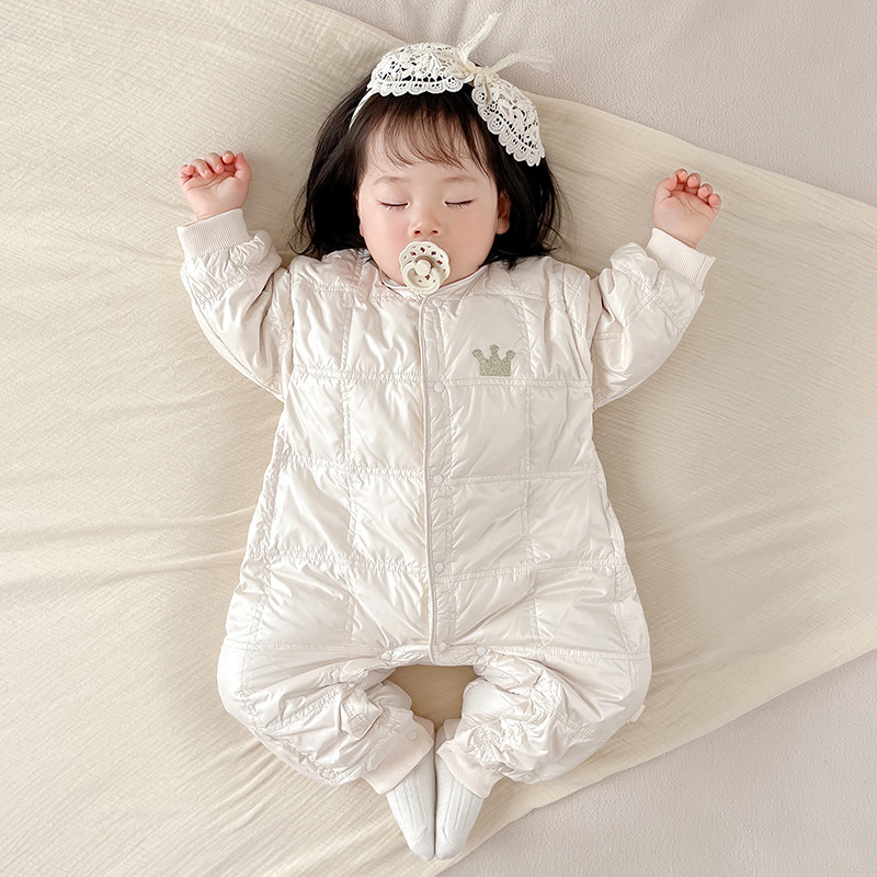 语越服饰婴儿冬季羽绒服女宝宝轻薄白鸭绒连体衣幼儿加厚冬装