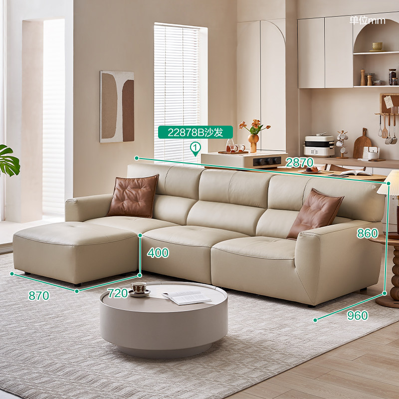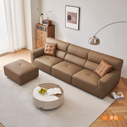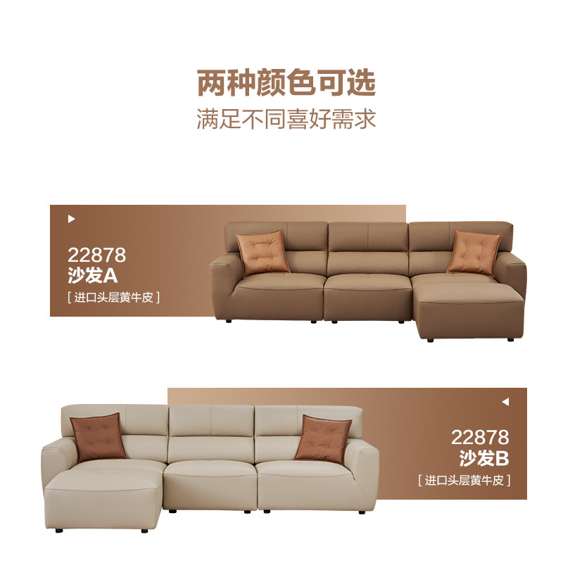 全友家居 门店同款 时尚简约 22878 一字型直排皮艺牛皮真皮沙发