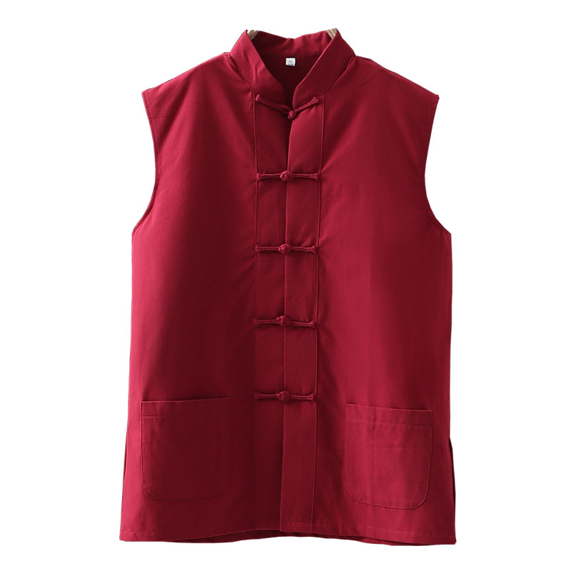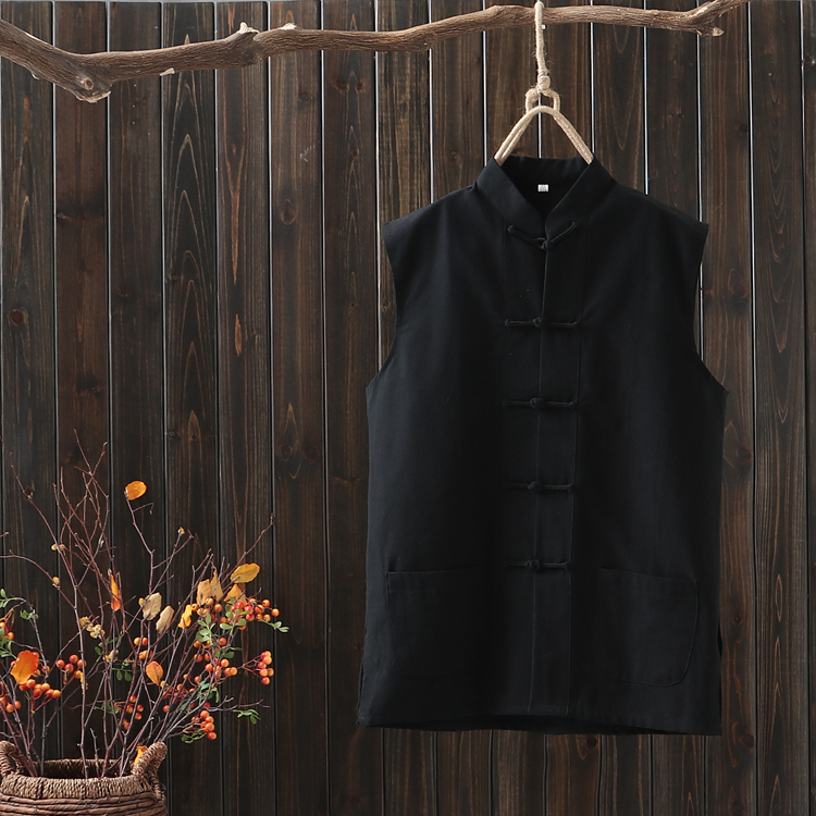 春秋纯棉老粗布无袖唐装男中国风中式立领马甲中老年外套坎肩工服