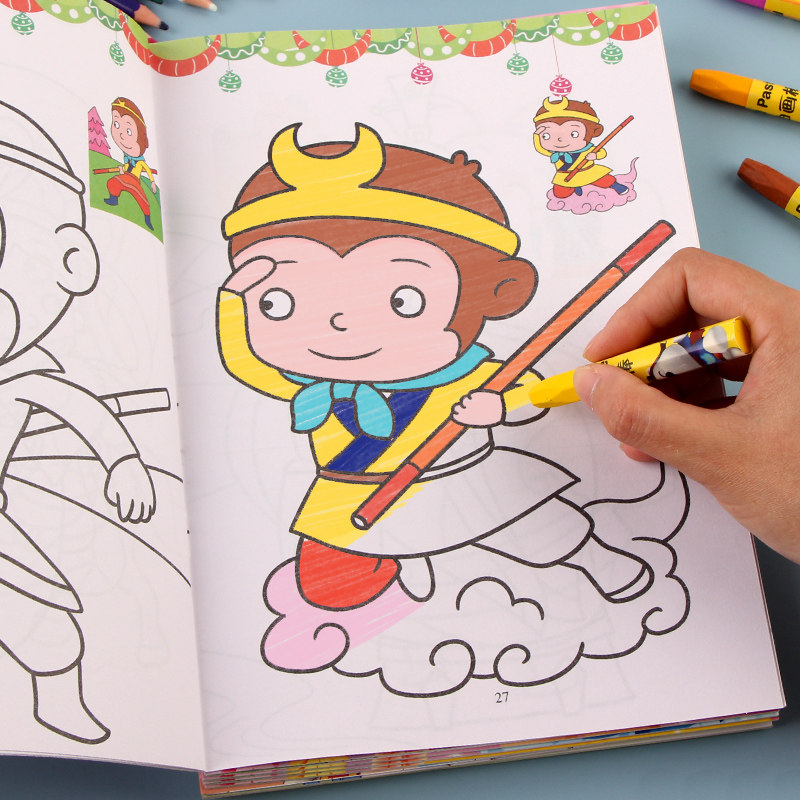 儿童画画本西游记涂色书2-3-6岁幼儿园宝宝图画绘画简笔画填色本