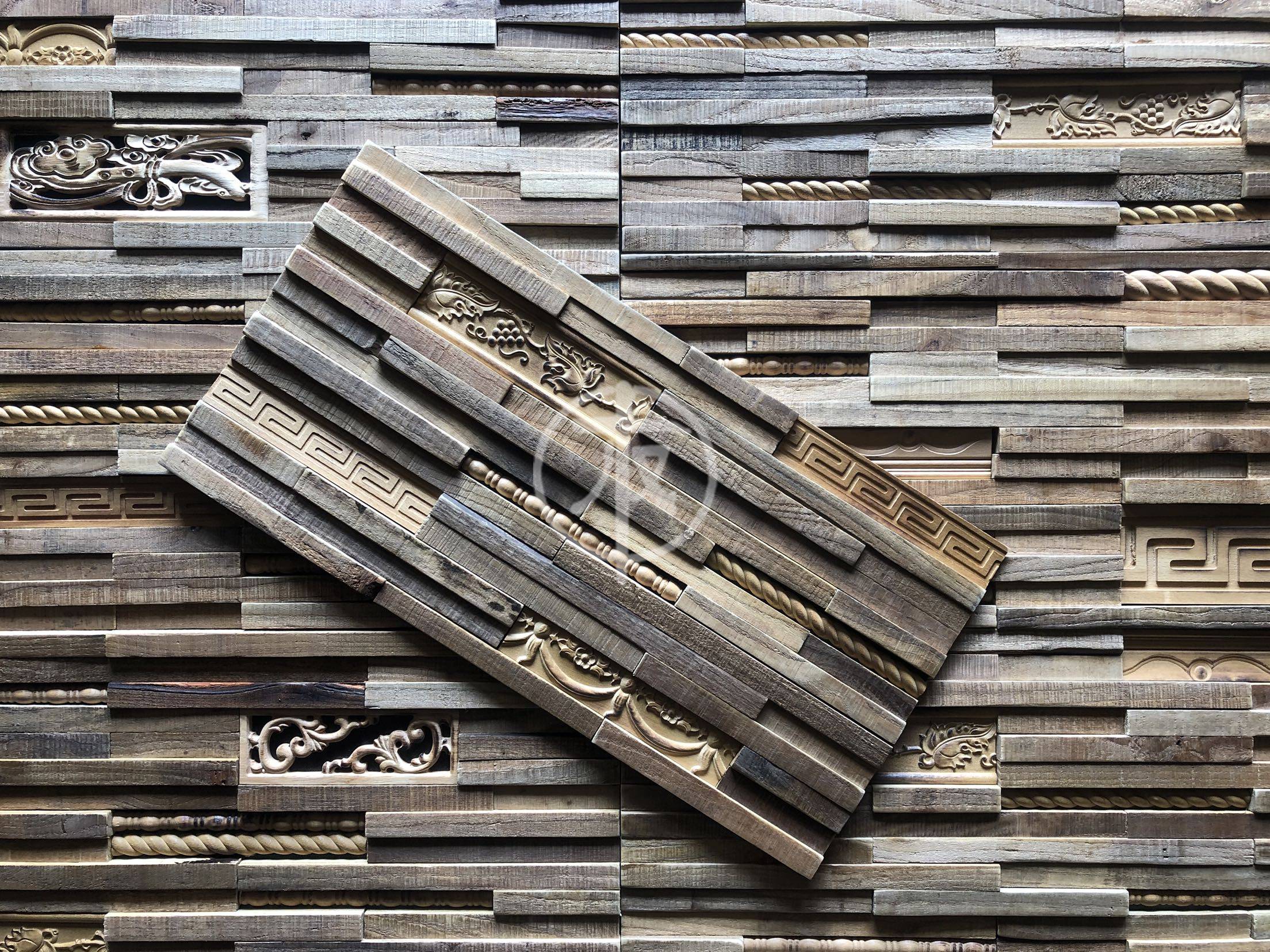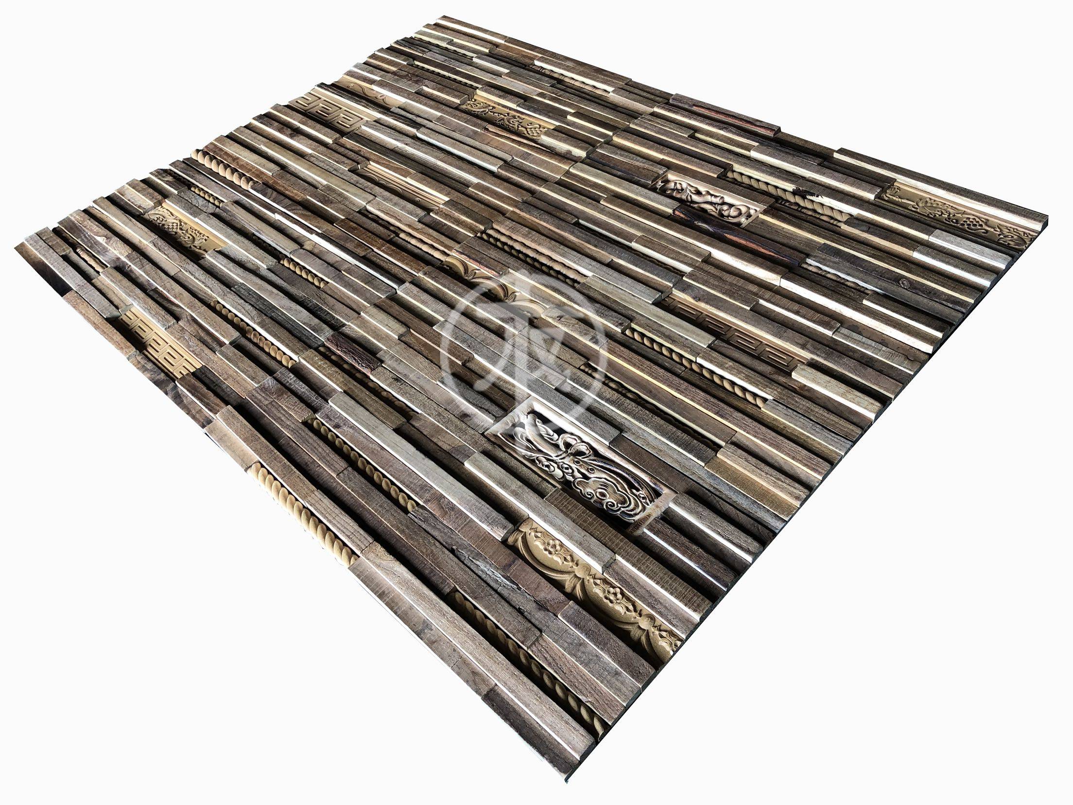 风化实木马赛克线条搭配简约复古电视背景墙创意设计风格客厅卧室