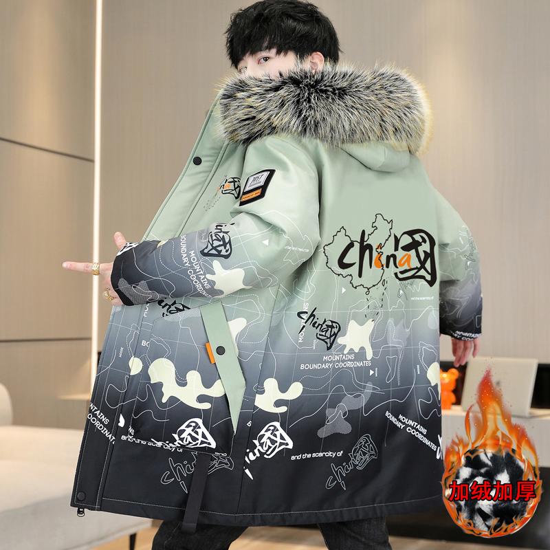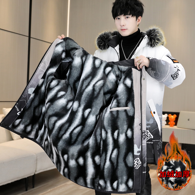 羽绒服男士2024年新款青年加绒加厚保暖派克服棉衣冬季中长款外套