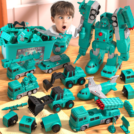磁力合体变形机甲金刚儿童益智拼装数字汽车机器人3到6岁男孩玩具