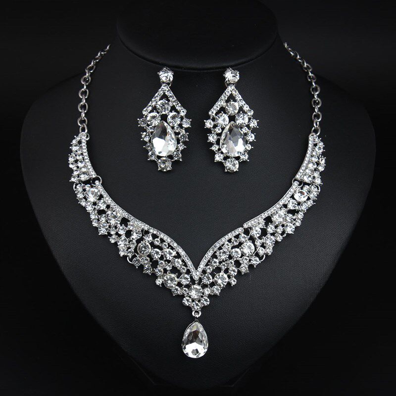 时尚精致水滴吊坠锁骨短项链耳环首饰套装女新娘礼服宴会网红饰品