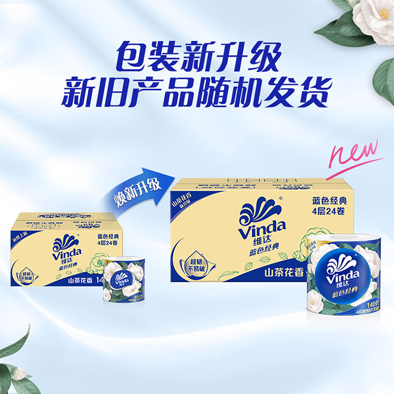 维达蓝色经典山茶花香有芯卷纸超韧家用整箱卷筒纸家庭装卫生纸巾